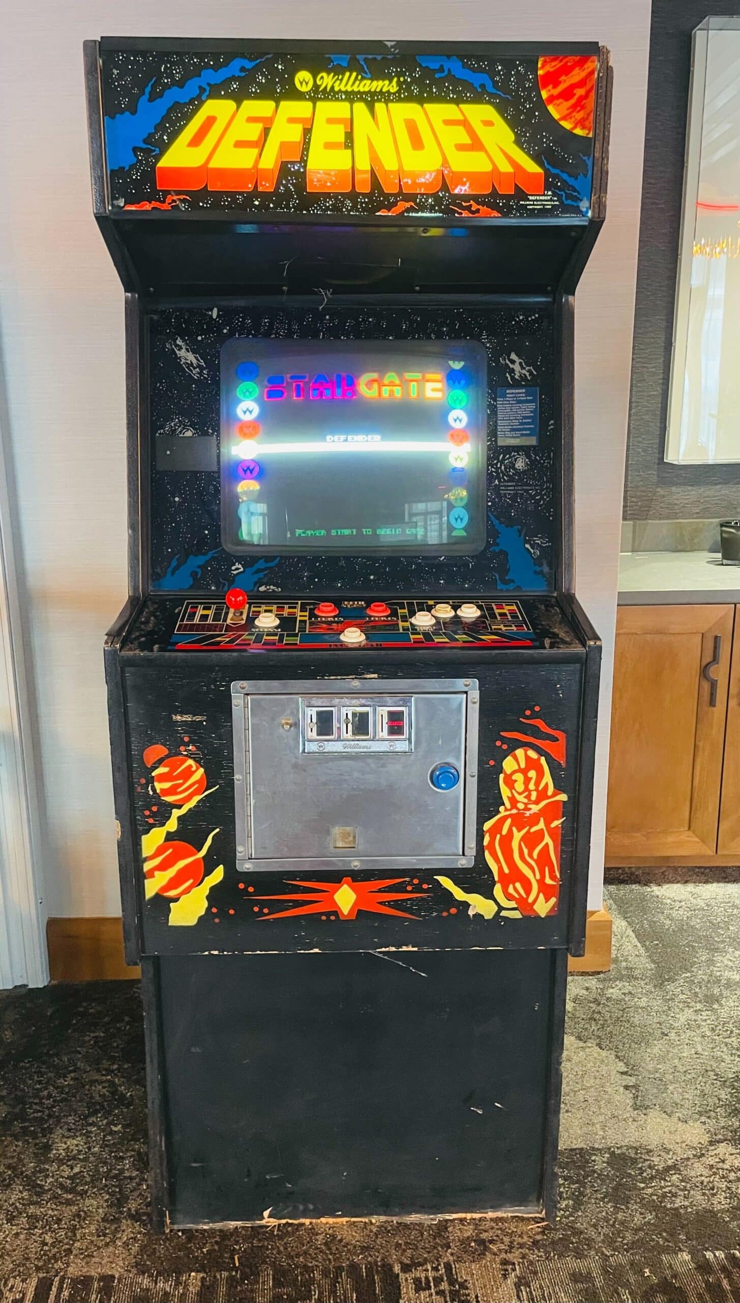 Authentic Upright Arcade Cabinet with classic Defender gameplay
