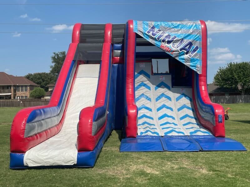 Test speed, strength, and determination with the Ninja Wall Challenge rental from Texas Entertainment Group. Inspired by popular ninja warrior courses, this inflatable warped wall attraction lets guests sprint, climb, and conquer the curved wall in a thrilling race to the top.
