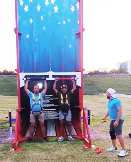 Turn your event into a live-action spectacle with the Battle Bar Hang Challenge, an extreme twist on the classic hang bar game that tests strength, endurance, and mental toughness. Two participants go head-to-head as they are hoisted up to 20 feet in the air, competing to see who can hang on the longest.