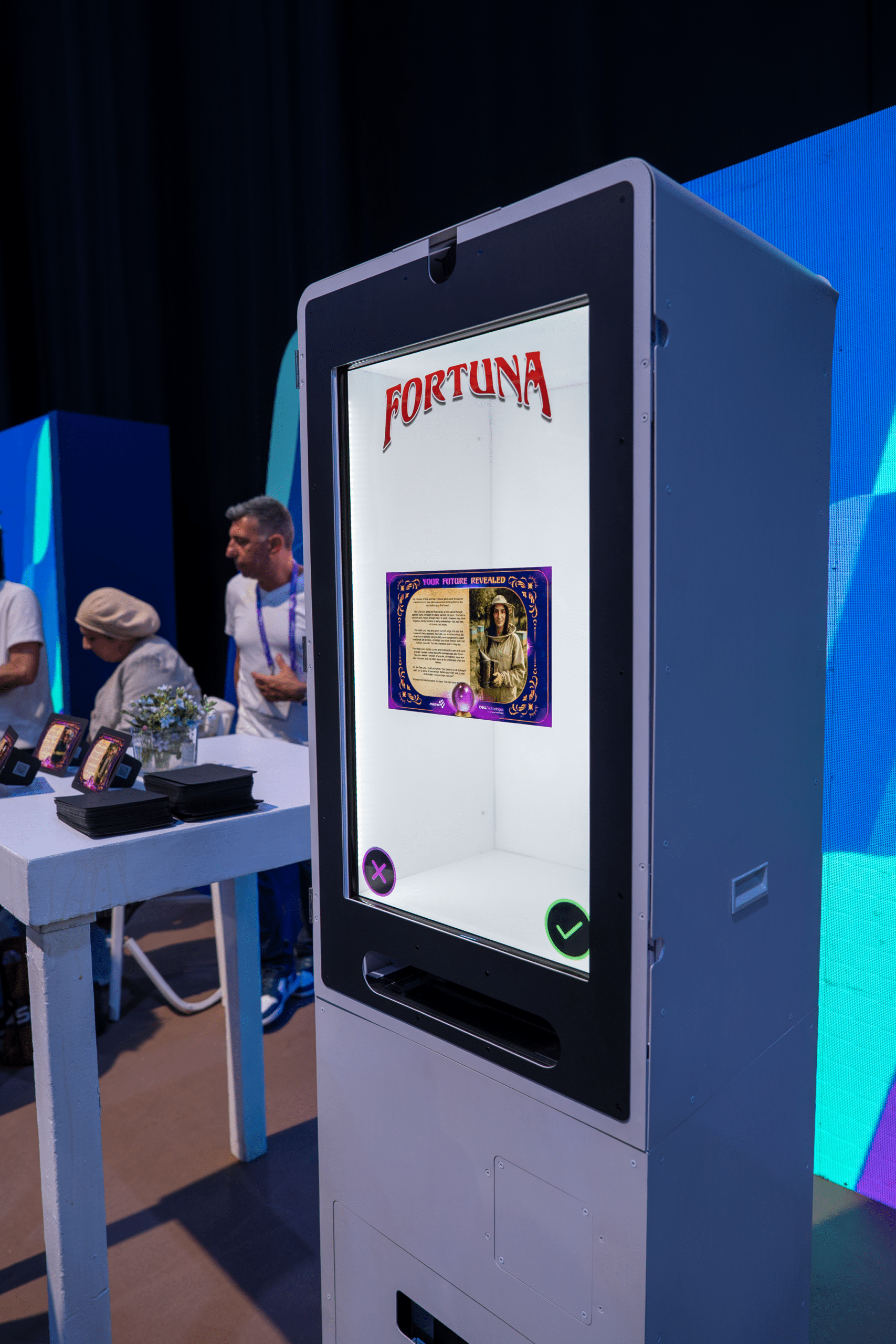 Perfect for corporate events, luxury private parties, brand activations, galas, trade shows, and VIP experiences, Fortuna AI is a sophisticated centerpiece that draws crowds, sparks conversation, and delivers interactive entertainment with a modern, high-tech twist.