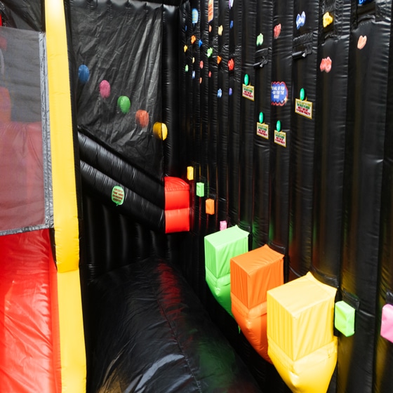 Designed for head-to-head excitement, participants race through obstacles, scramble up climbing features, tap IPS-style interactive lights, and slide to the finish as the built-in timer tracks speed and performance. Its bold design and lighting elements make it an exciting addition to neon-themed and glow parties, creating an energetic, modern event atmosphere.
