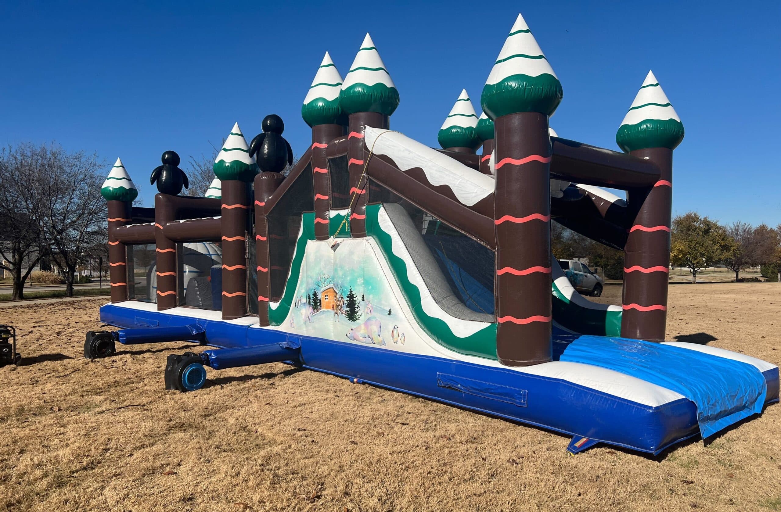 Featuring snowy pine trees, a whimsical igloo, and giant penguins, this beautifully themed inflatable brings the magic of winter to lifeβwithout the cold! Perfect for school events, corporate holiday parties, winter festivals, church gatherings, and community celebrations, itβs a must-have for any festive event.