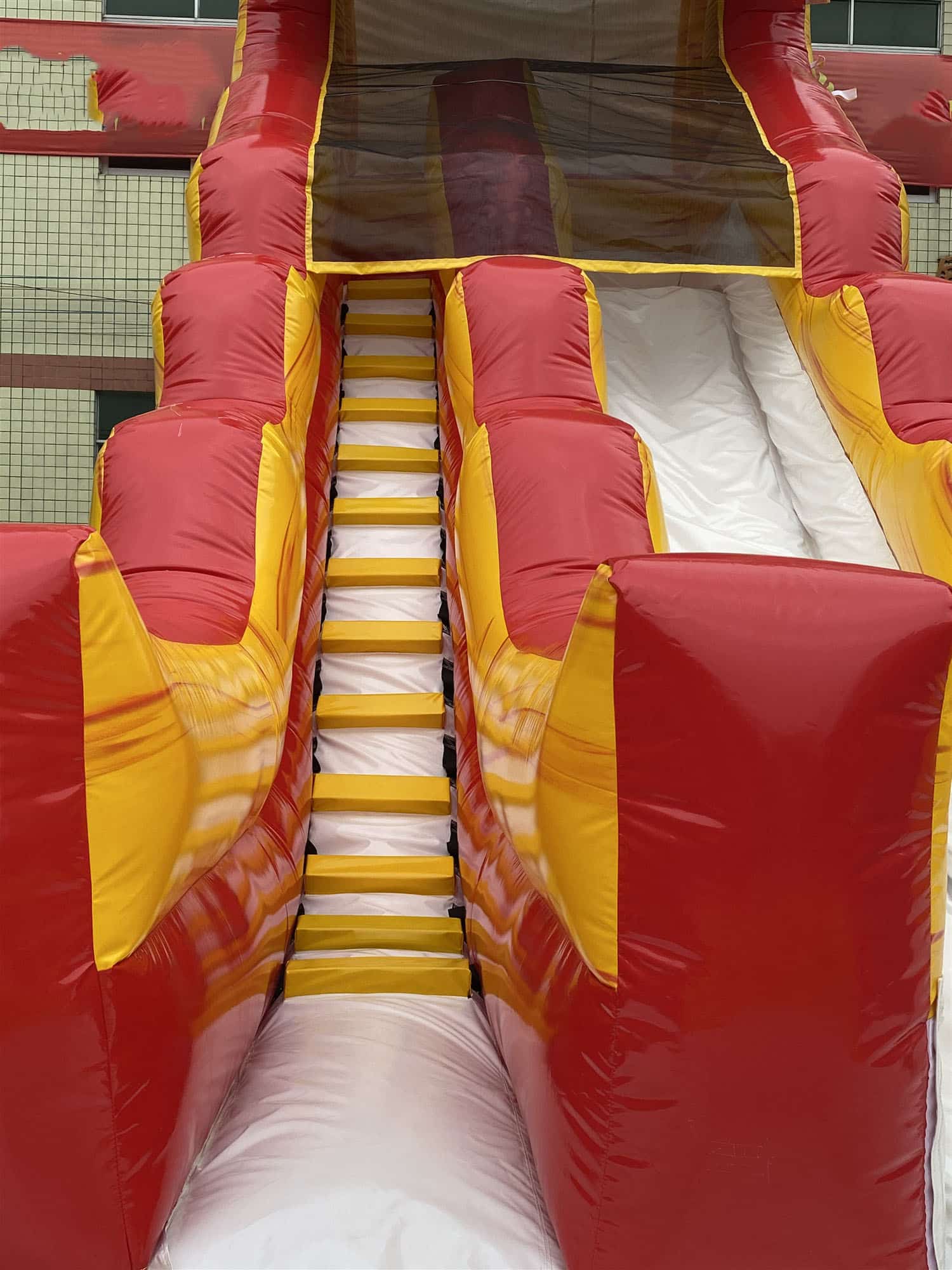 Riders climb to the top and race down the dynamic wave-style sliding lane, finishing with a refreshing splash into the built-in splash pool. The vibrant volcano design instantly draws attention and adds a fun, adventurous look to any party or event space. Big enough to keep lines moving yet compact enough to fit many venues, the Volcano Wave Slide is perfect for both large gatherings and backyard celebrations.
