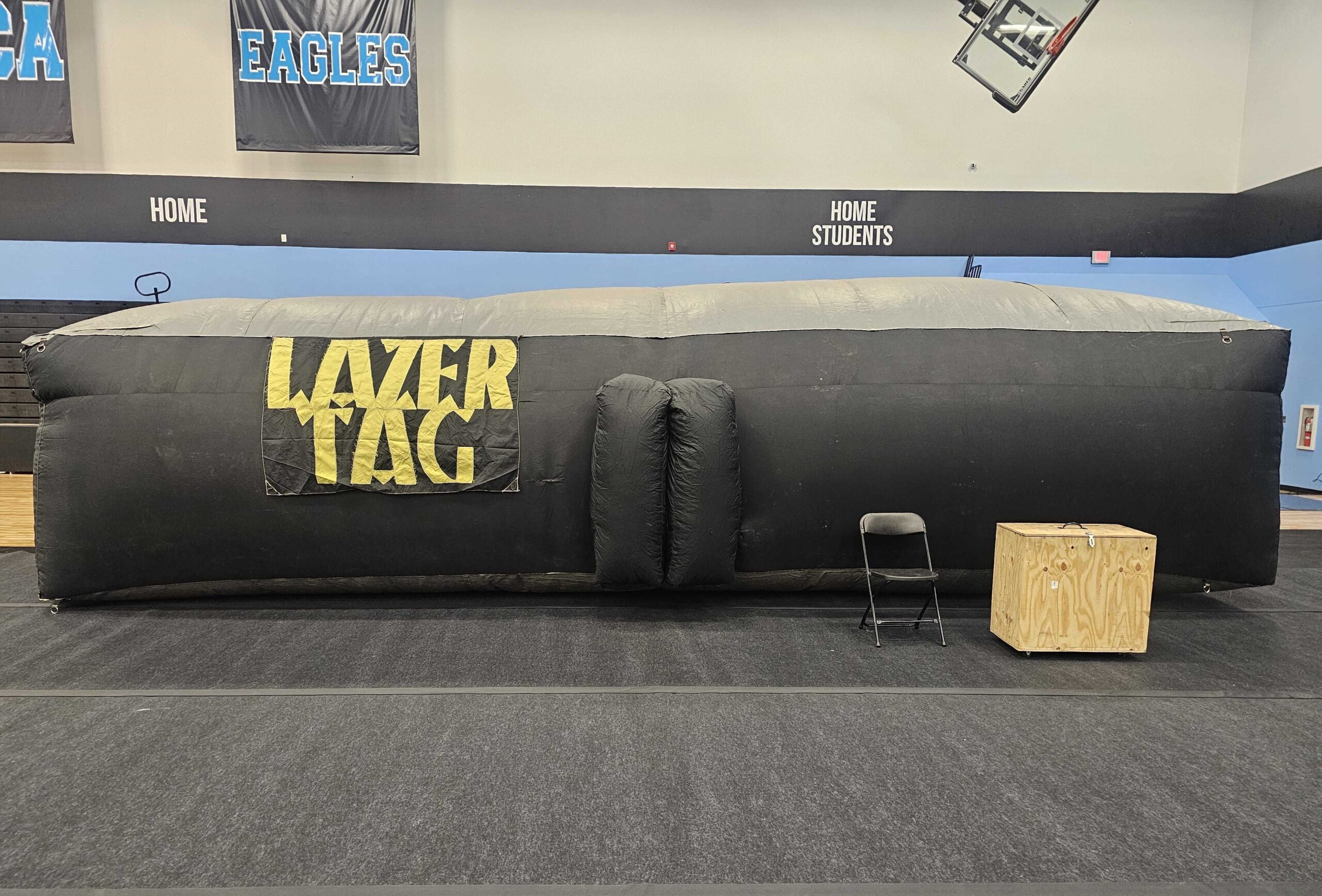Hold on to your lazer blasters, we’re set for battle. Two teams gear up with lazer guns with sensor headbands to commence lazer tag in our 36’x36′ inflatable lazer tag arena. Each team member attempts to make his way through our challenging maze, maneuvering around walls throughout. The object is to shoot as many of your opponents as you can while not being hit. This arena accommodates 2 – 4 lazer fighters at a time.