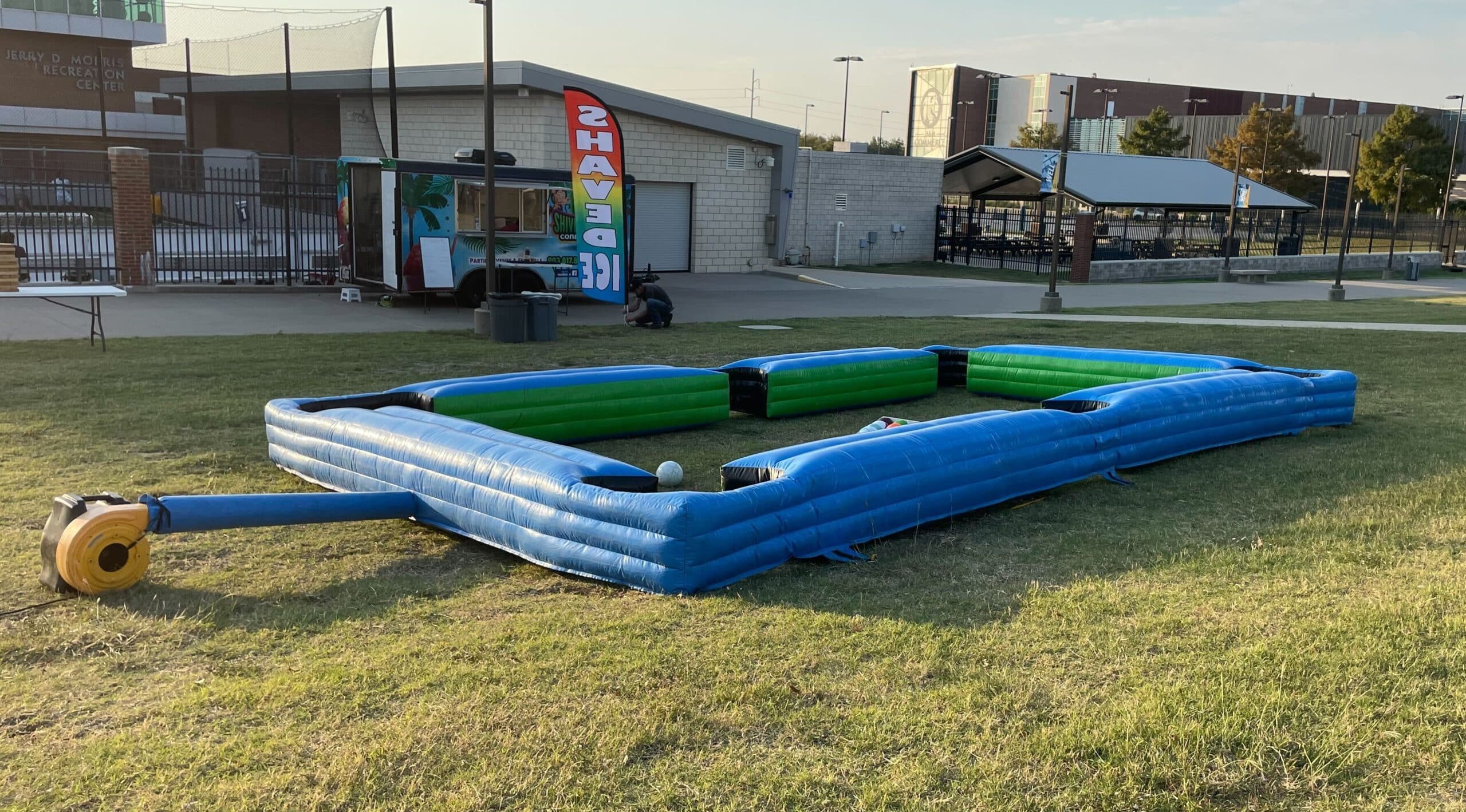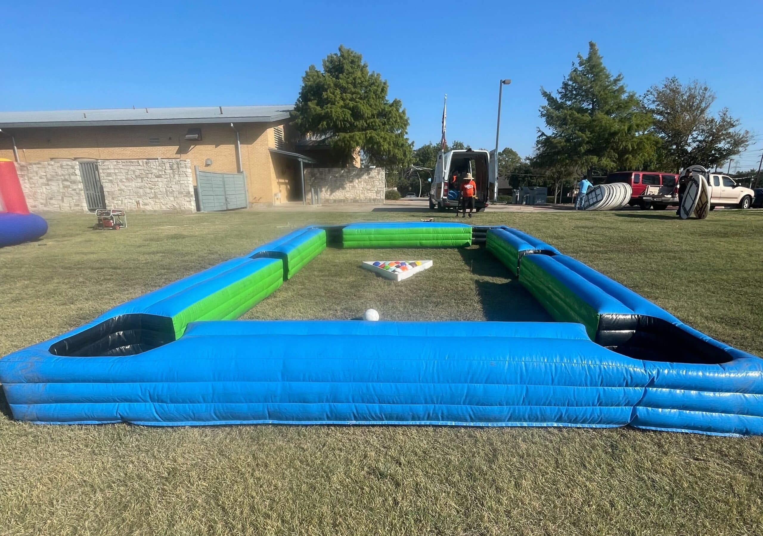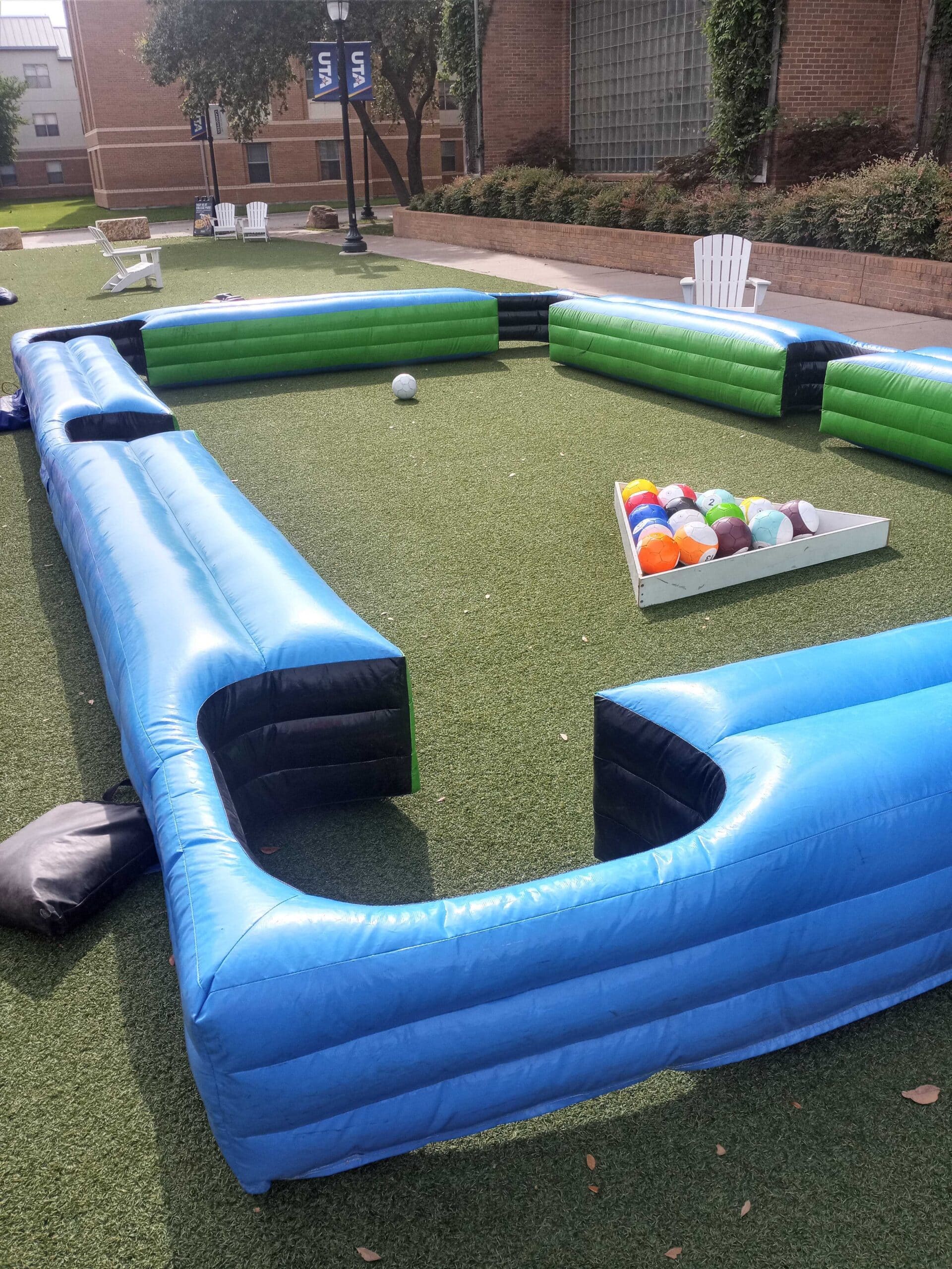 Set up on grass or flat surfaces, the inflatable rails create a safe, enclosed playing area that’s perfect for high-energy competition and nonstop laughs. Players aim, strategize, and kick their shots just like pool—only bigger, more active, and far more entertaining for both participants and spectators.