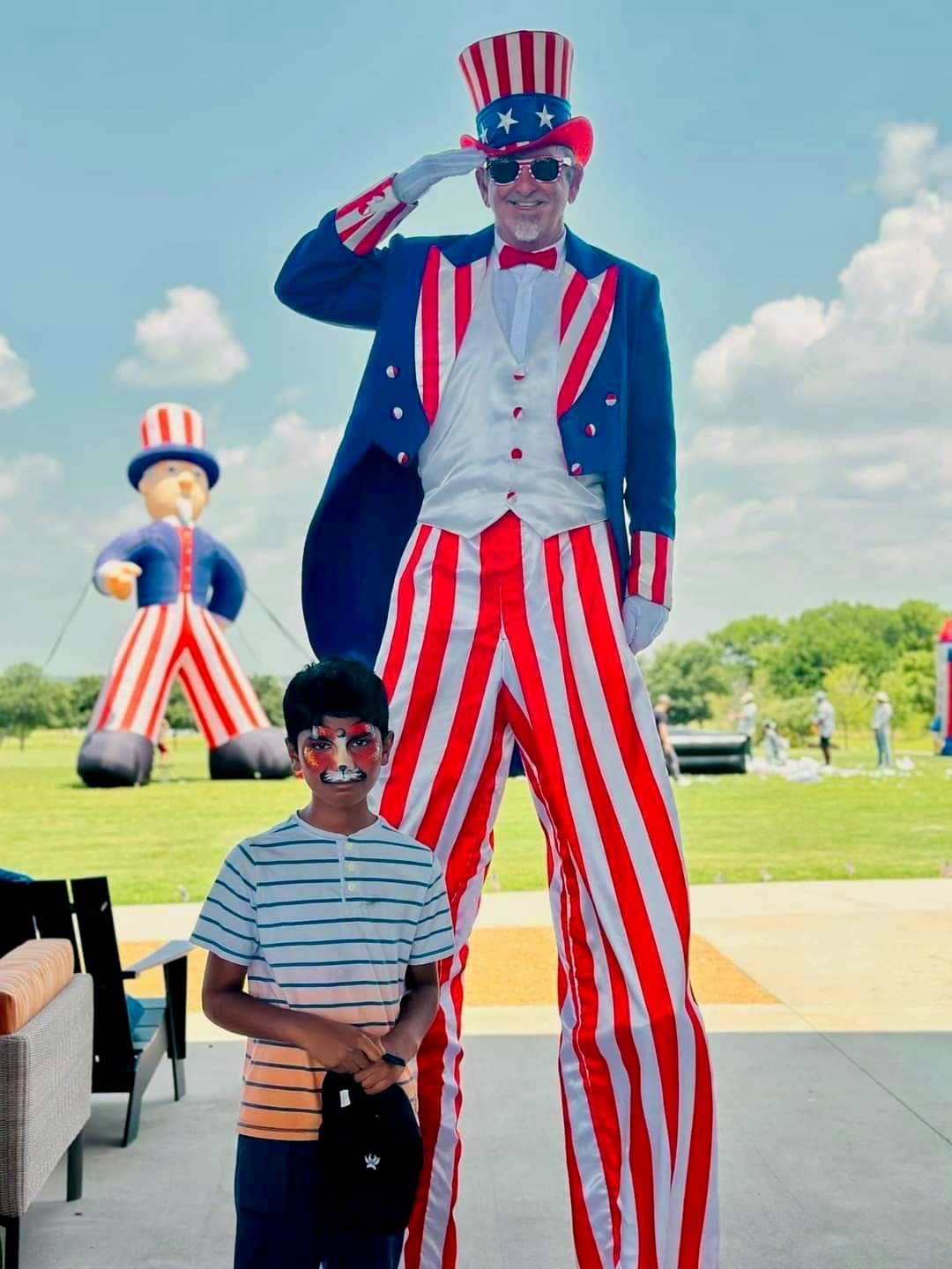 Make a bold patriotic statement with the Inflatable Patriotic Uncle Sam rental from Texas Entertainment Group. Standing an impressive 25 feet tall, this larger-than-life Uncle Sam inflatable is a powerful visual centerpiece for Fourth of July celebrations, patriotic festivals, parades, corporate events, and community gatherings.